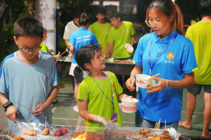 夜幕降临,烧烤滋滋作响,友谊随美食升温。