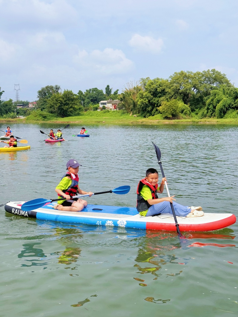 来到户外,同学们泛舟漓江,感受阳朔夏日的清凉,教练专业指导,伙伴们相互鼓励,第一次玩桨板的紧张一扫而光。